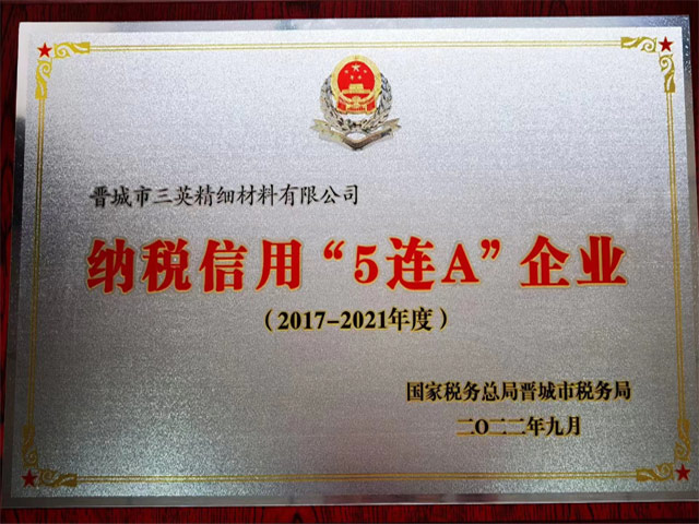 晋城三英辊棒荣获纳税信用"5连A企业 "荣誉称号"